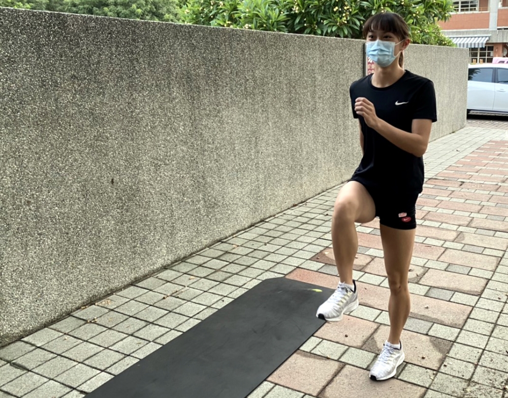 和疫情前最大的差別是,現在只能待在家做一些動作不大的訓練,偶爾早起戴著口罩去慢跑,無法到操場上衝刺跑,在外訓練時也要戴口罩,比較不舒服,在家標準的重量訓練器材也比較少,只能試著找有重量的物品做訓練。