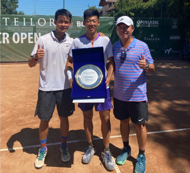 前天雙打冠軍戰和法國 Valentin Royer搭檔,以4:6、 6:2 [10-8]打敗頭號種子 Corentin Denolly/Clement Tabur,贏得首座職業賽雙打頭銜的曾俊欣,單打也有斬獲。