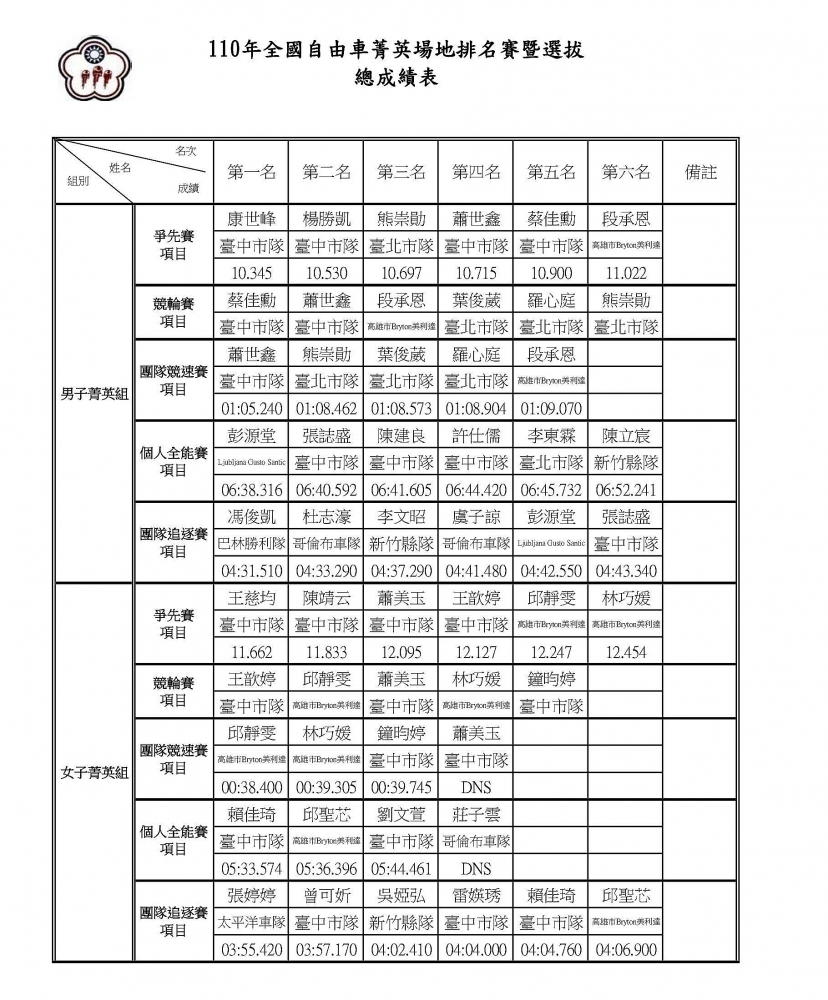 110年全國自由車菁英場地排名賽暨選拔賽,今天在台中鰲峰山自由車場登場,國內好手精銳盡出,爭取杭州亞運第二階段培訓資格,明天將續在原地由全國自由車錦標賽接棒。