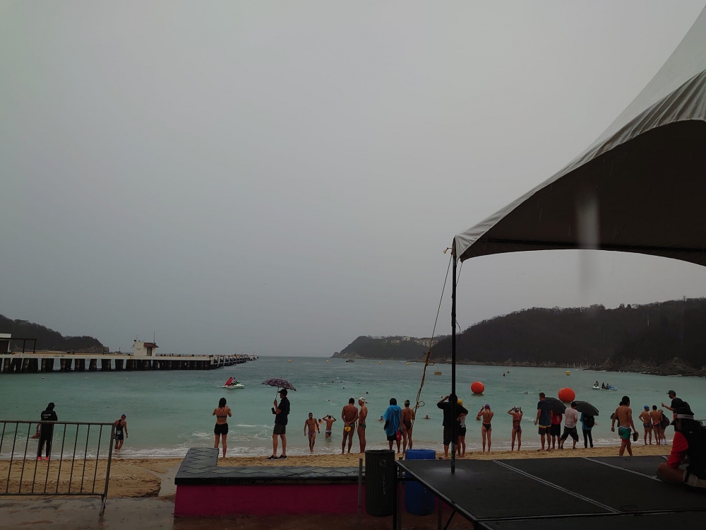 他跟我說了很多注意事項,像是比賽時是漲潮,海灘會很短;建議我再去騎一下比賽路線,下雨天的路況會很不同,且有很多水窪。聊到後頭他說我隻身來參賽很厲害,有任何困擾的話請去找他,他想要幫助我。